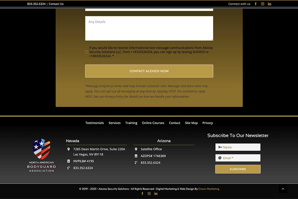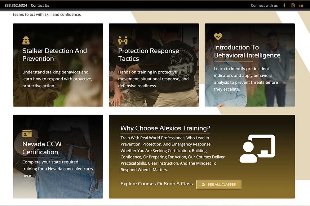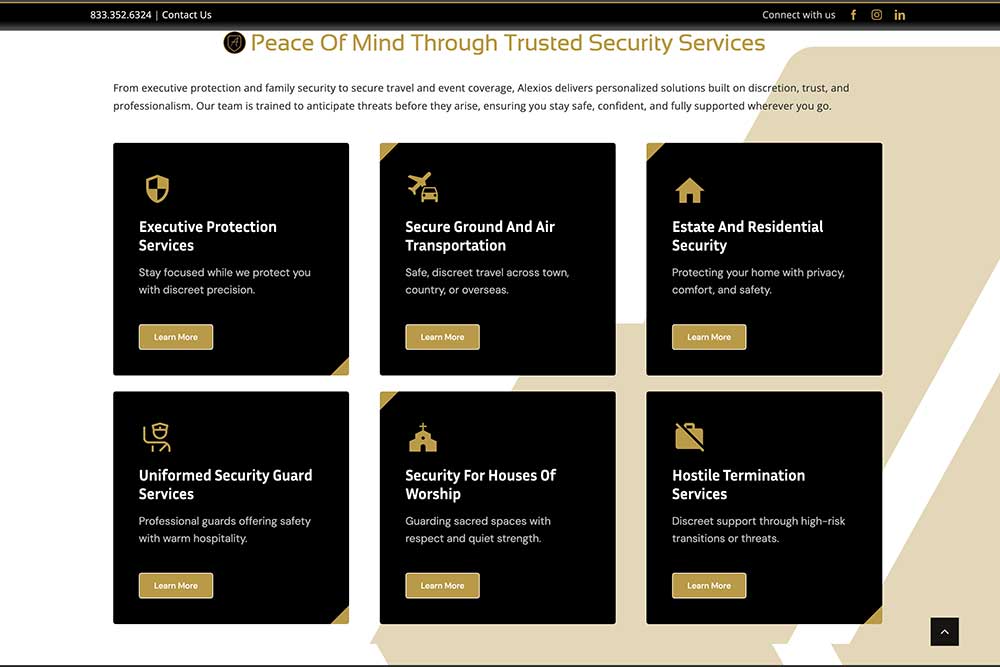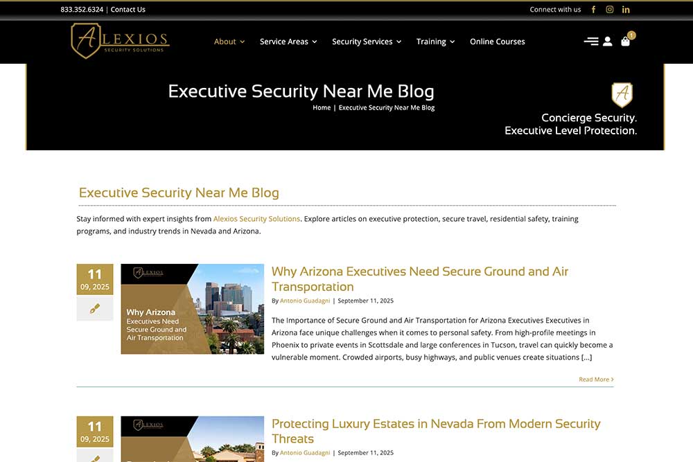 Alexios Security Solutions provides executive protection and specialized security services across Las Vegas, Phoenix, and nationwide. Their old website served its purpose in the early days but struggled to deliver leads and credibility as the company grew.