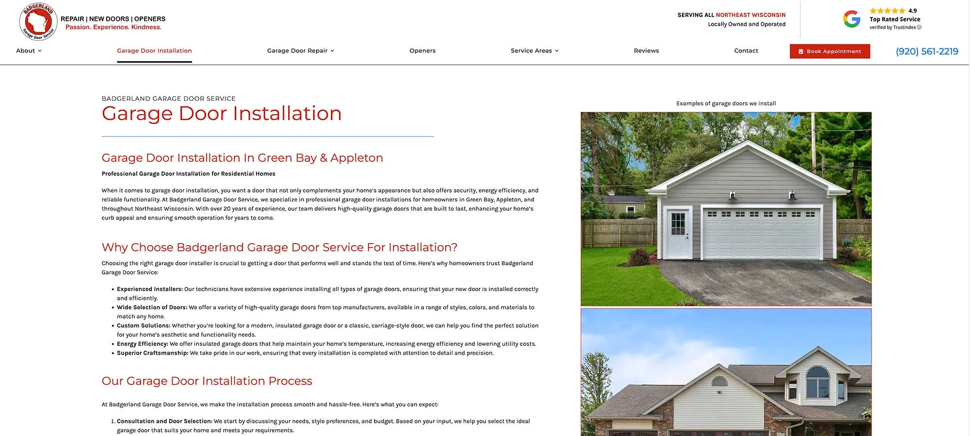 The site launched in September 2024 on time and met all the client’s needs, from search engine optimization to eye-catching design. Badgerland Garage Door’s new website is now fully SEO-friendly, ranking well for their target keywords, and it continues to serve as an effective marketing tool for attracting customers.