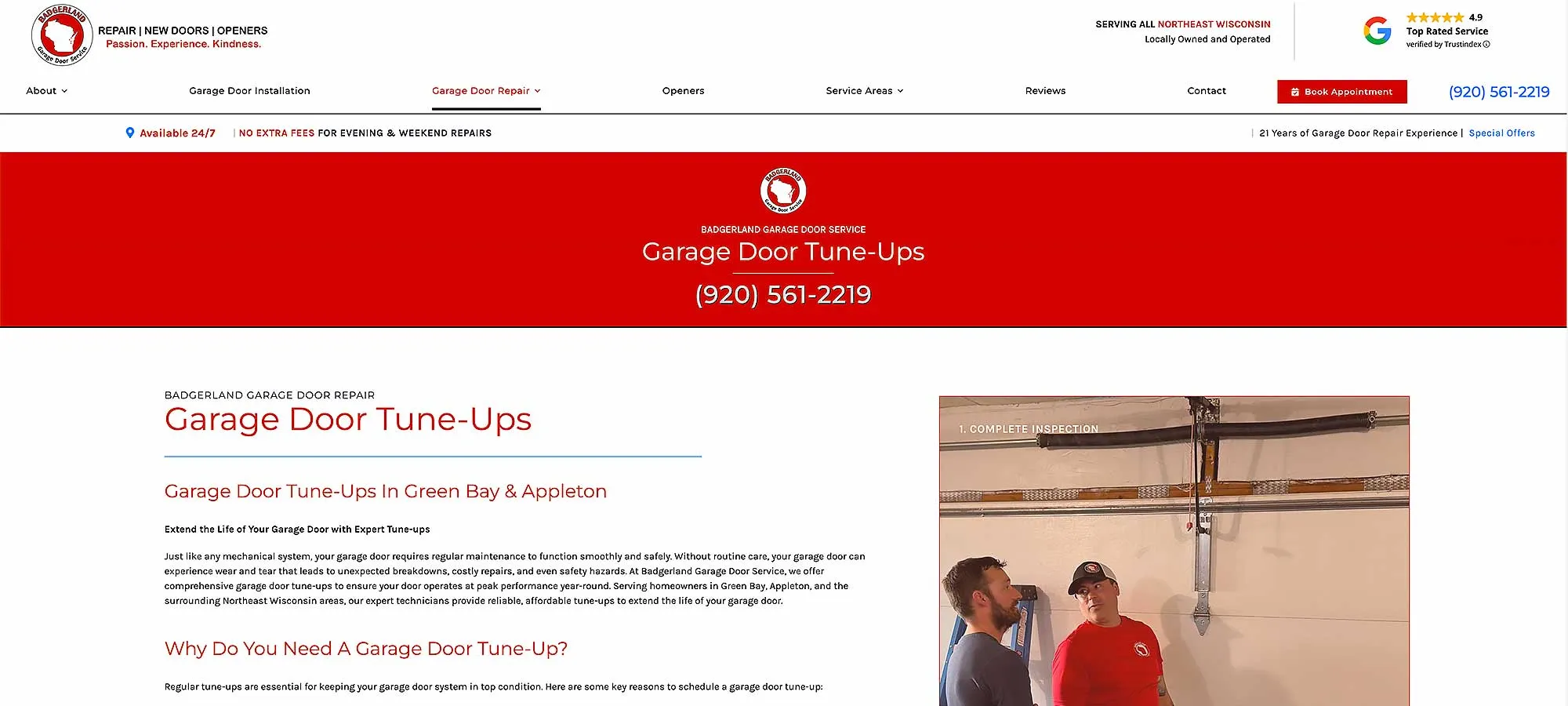 - Graphic Design & Visuals: Designed a clean, professional look to represent Badgerland Garage Door’s services and brand.